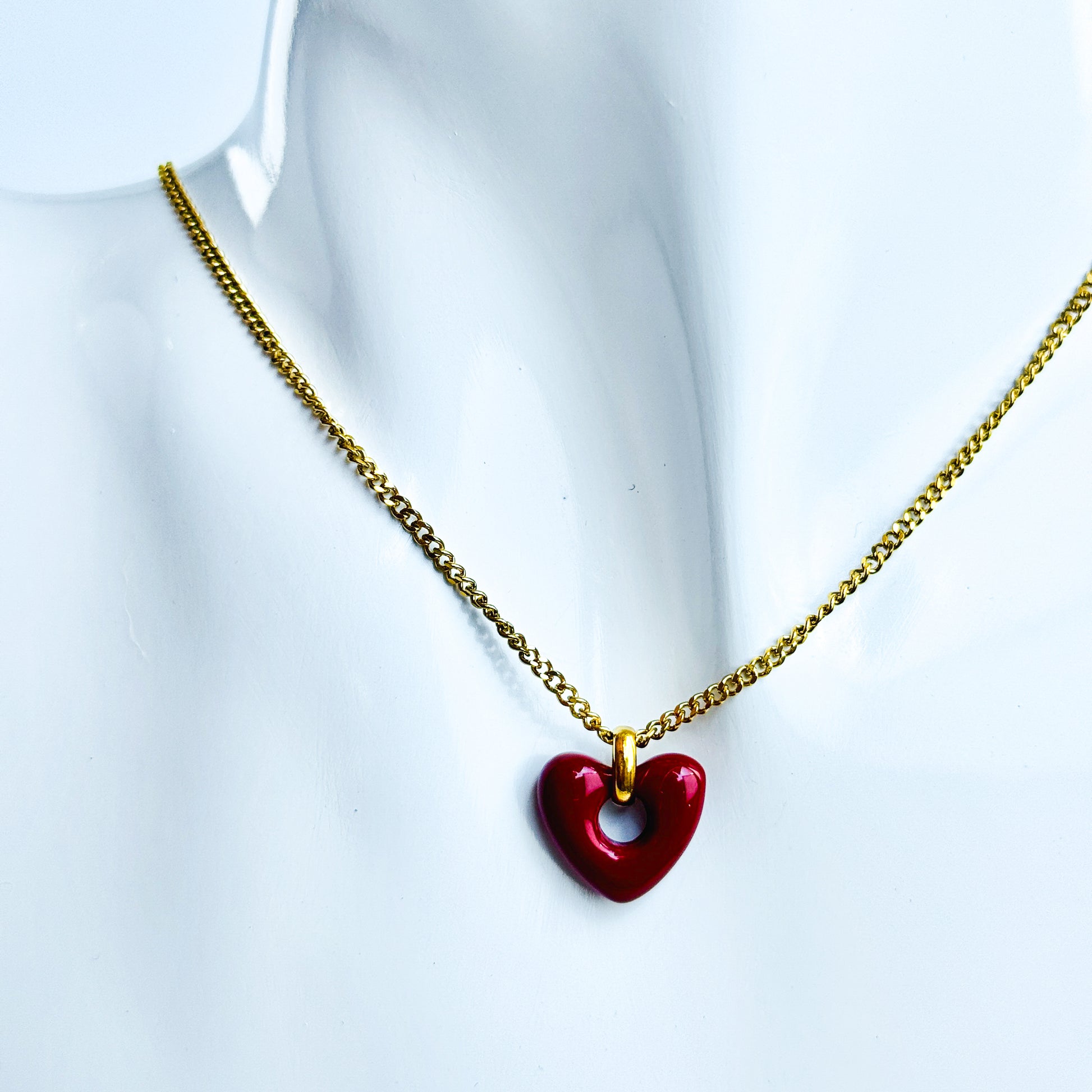 Cadenita clásica de acero inoxidable, con dije de corazón rojo. Mide 40 cms.