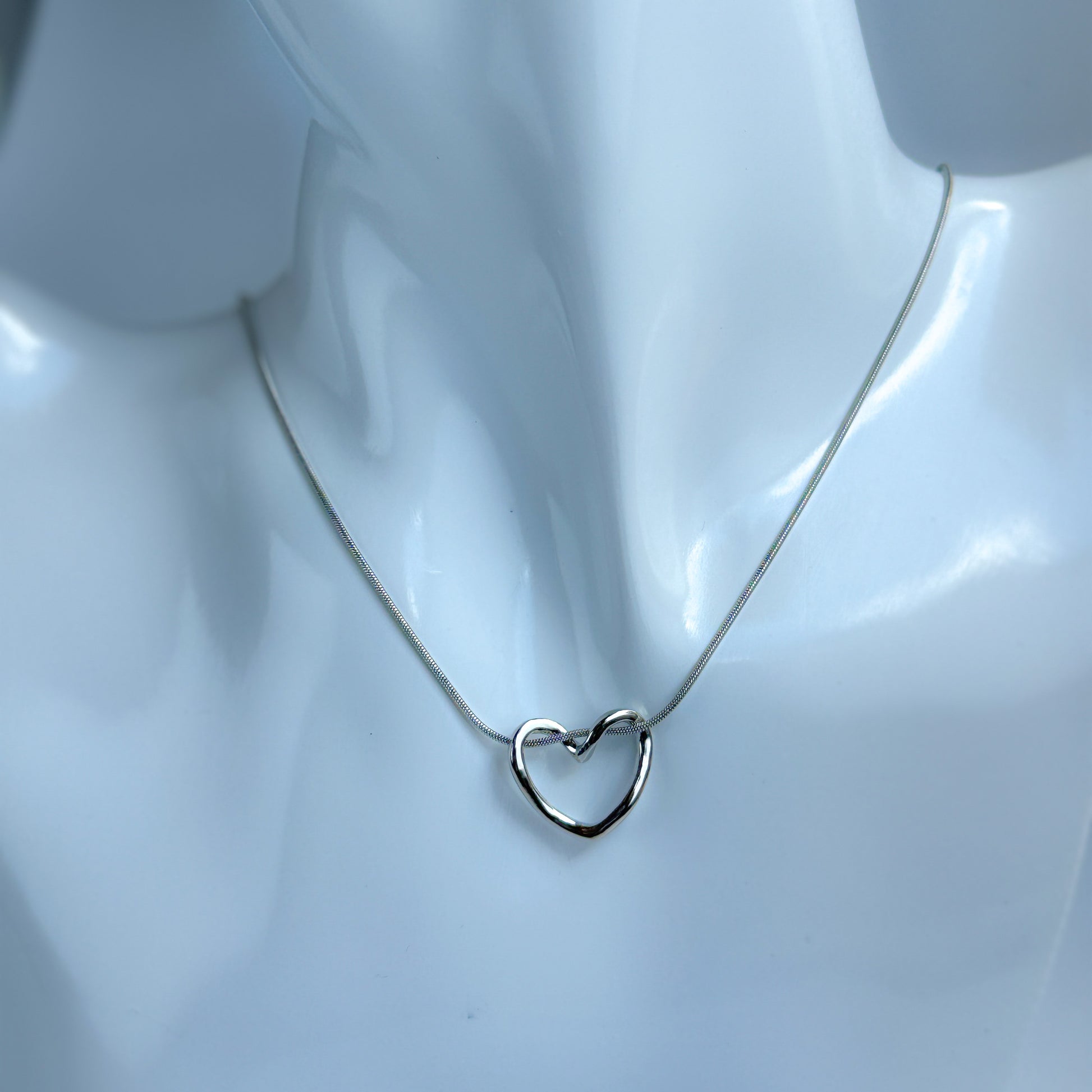 Cadena tipo cola de ratón con dije de corazón. Mide 40 cms.
