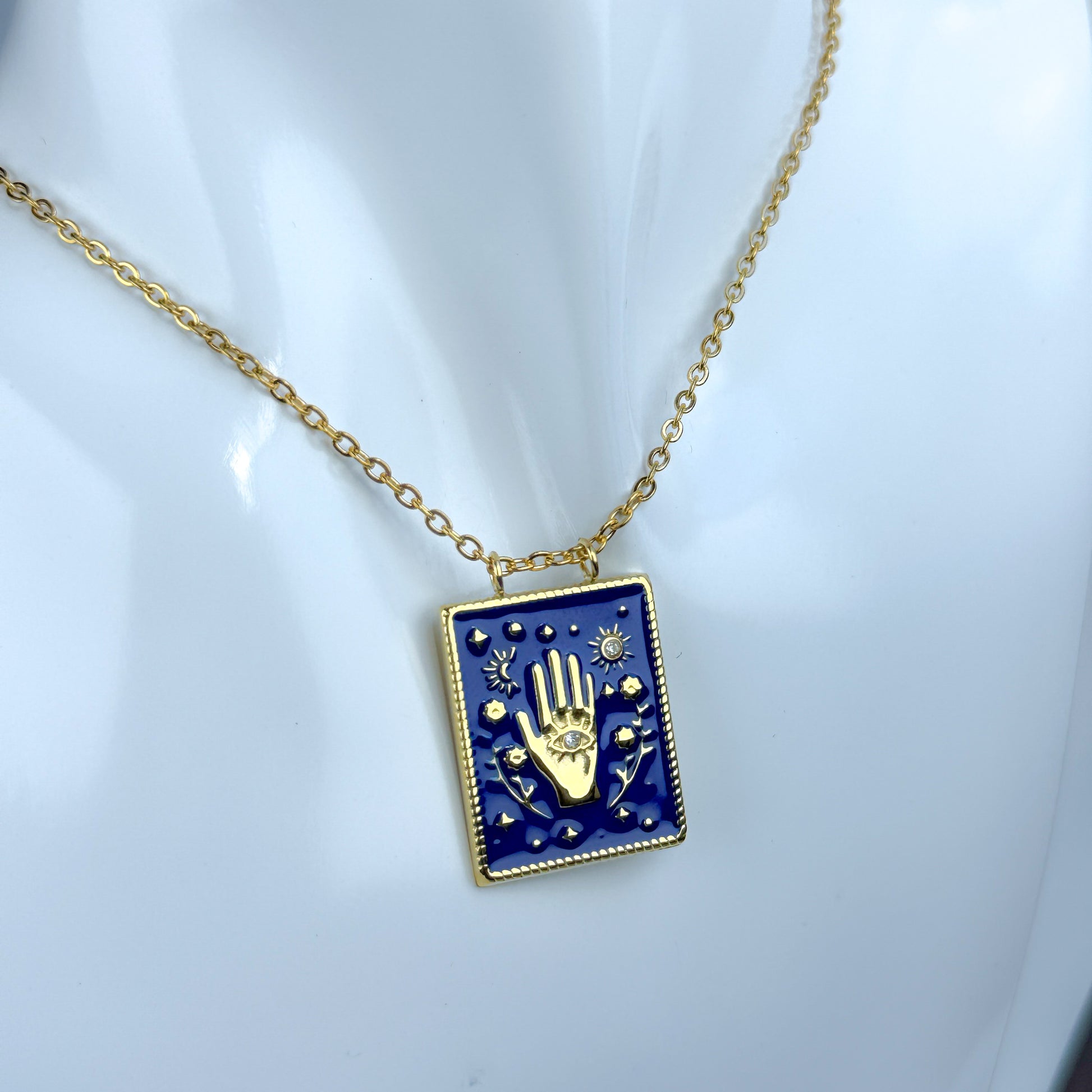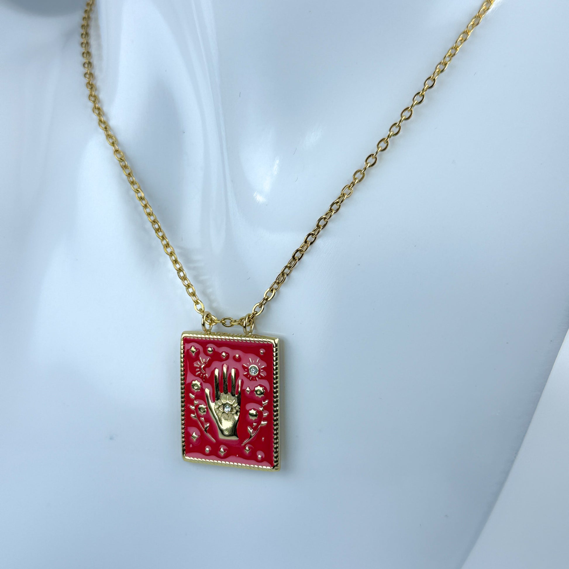 Cadena clásica con dije alusivo al tarot. Mide 40 cms.