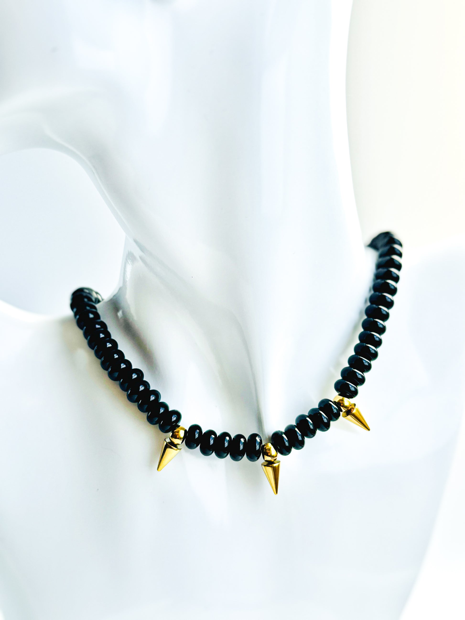Collar Chunky de piedras naturales y dijes muy rock. Mide 40 cms.